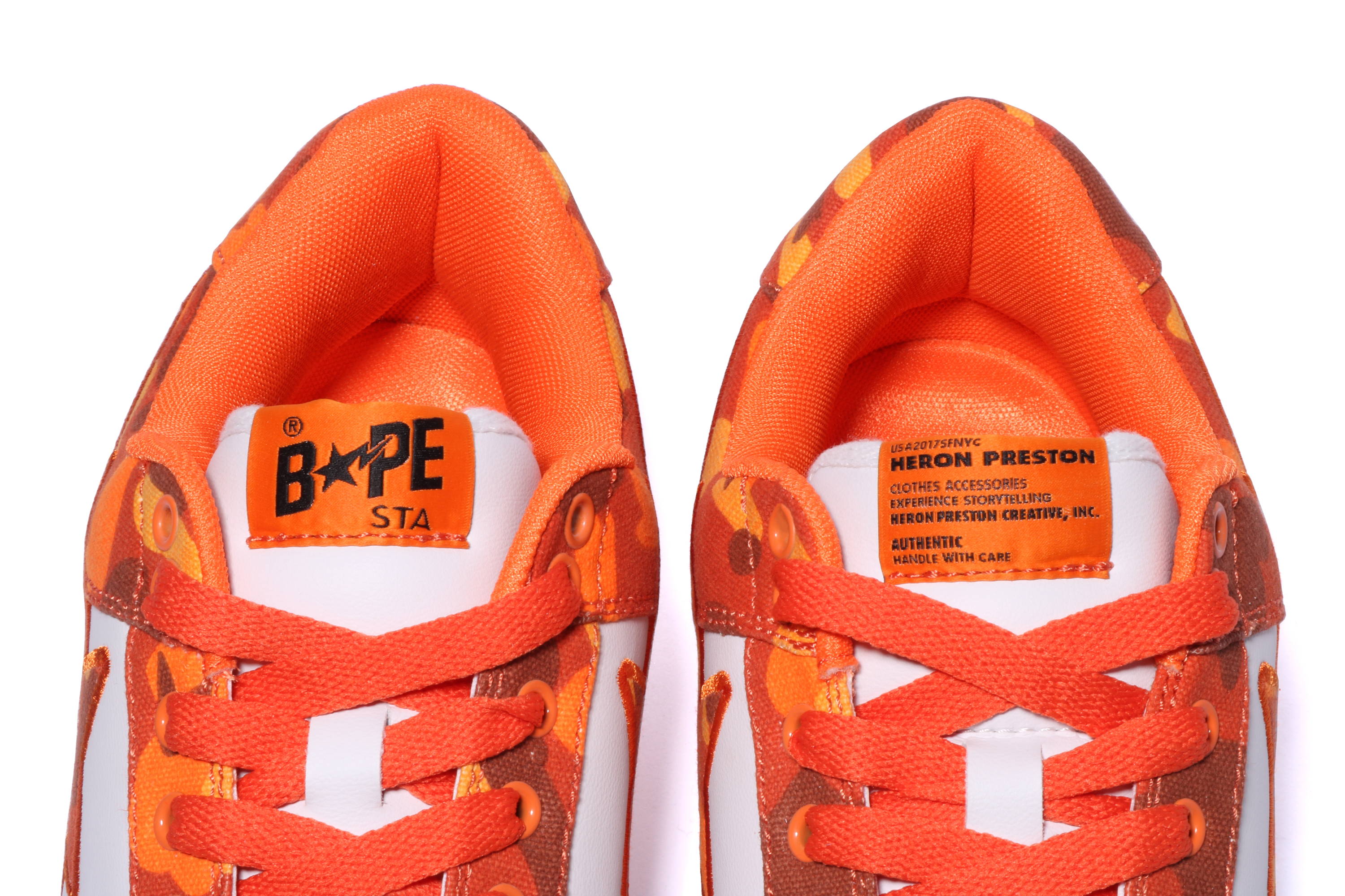 Heron isA BATHING APE®︎(Below)BAPE®) archives,SHARK HOODIE,BAPE® CAMO,APE HEAD,BAPE He reinterprets cult classics that inspired generations when they were in the moment, such as the STA™️. Using a design principle that Heron calls "instant language," he honors the heritage and history of each piece while adding a little of his own language.